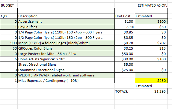 Kickoff Meeting for Artwalk Committee / Prep Budget Spreadsheet 8499_f60dfb-31> |